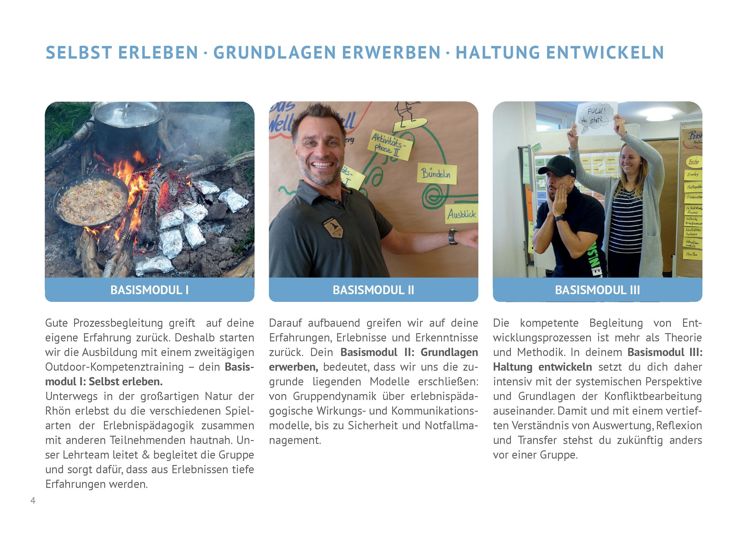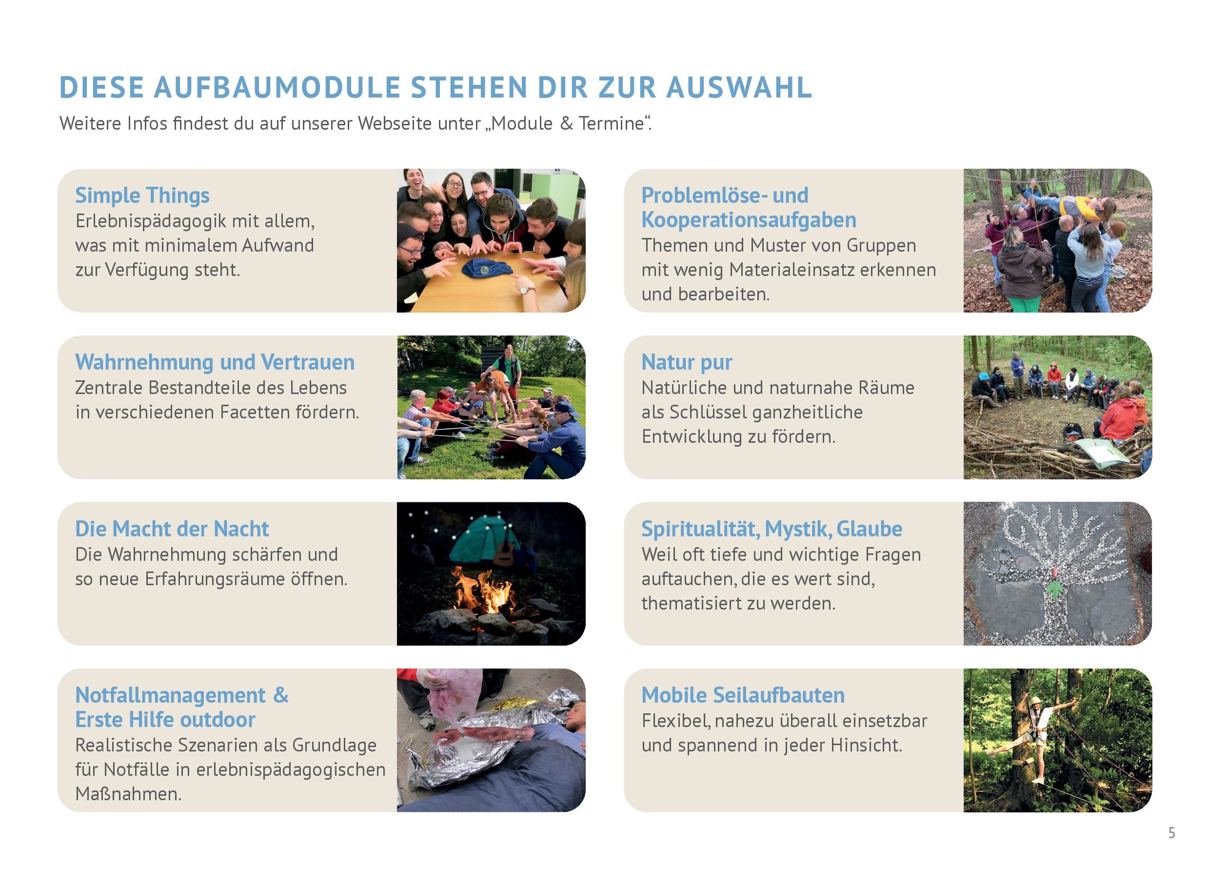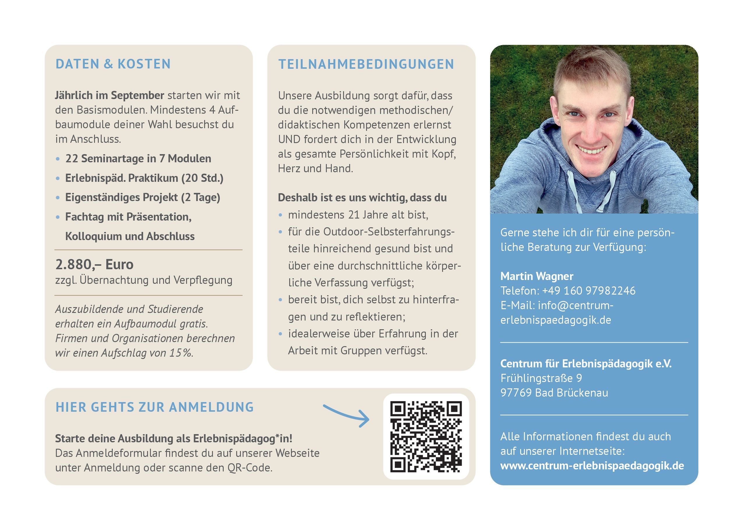 - für die Outdoor-Selbsterfahrungsteile hinreichend gesund bist und über eine durchschnittliche körperliche Verfassung verfügst.