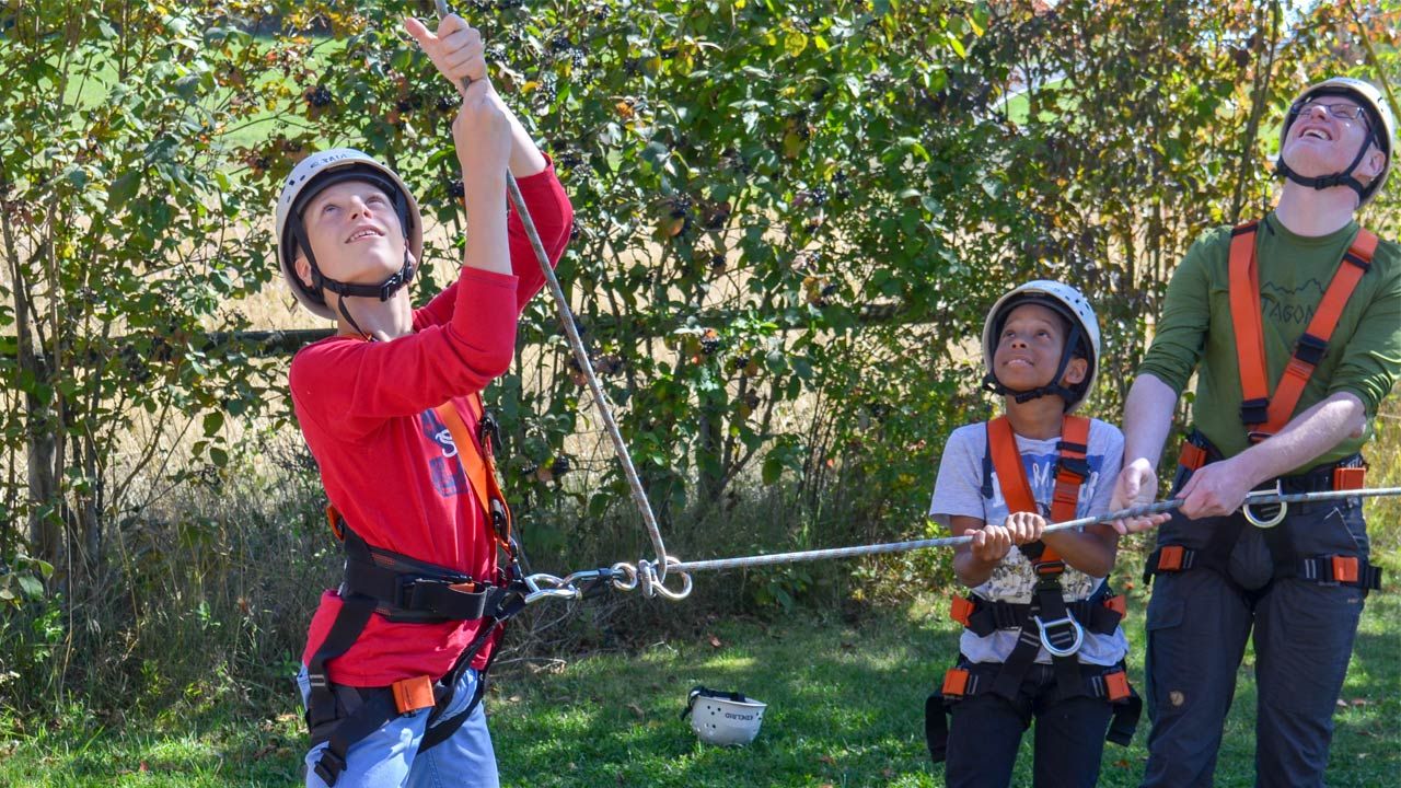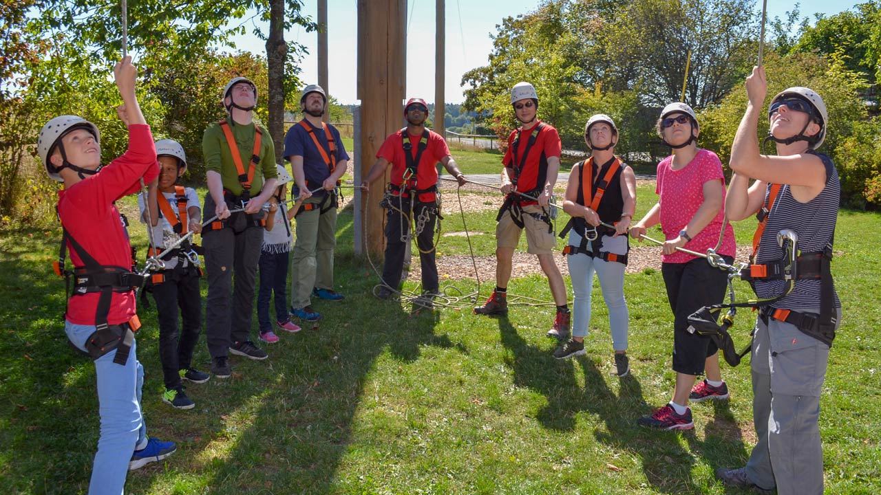 • Unsere Hochseilgartentrainer*innen sind in Technik, Sicherheit und Pädagogik geschult.